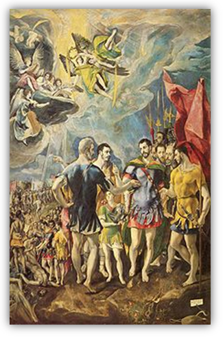 Der heilige Mauritius war ein Schutzheiliger des Heeres, der Infanterie, der Messer- und Waffenschmiede und wurde angerufen vor Kämpfen, Gefechten und Schlachten. Der im dritten Jahrhhundert nach Christus geborene Kommandeur einer römischen Legion unter Kaiser Maximilian soll sich, der Legende nach, den Anweisungen seiner Befehlshaber widersetzt haben, gegen christliche Glaubensbrüder ins Feld zu ziehen. Kaiser Maximilian ließ daraufhin die gesamte Legion, inklusive ihres Anführers, in einem Feld nahe der römischen Siedlung Agaunum, dem heutigen St. Moritz im Kanton Wallis der Schweiz, hinrichten.